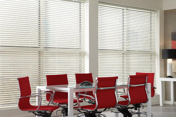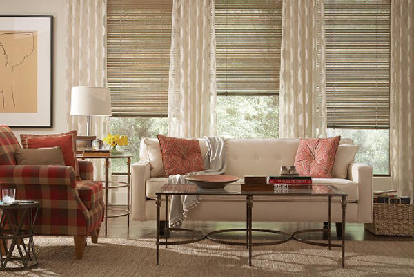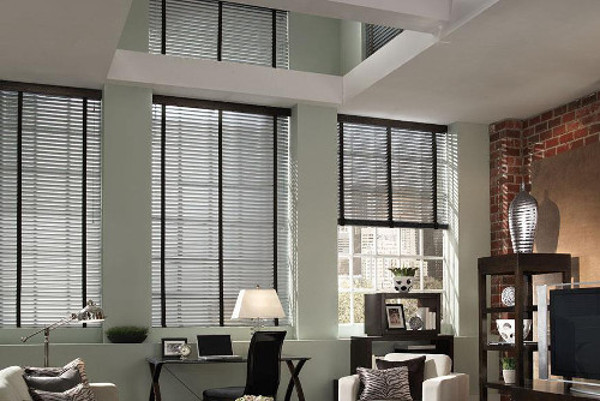 Aluminum blinds go well with contemporary interiors. Drapery House offers a wide selection of colors and design patterns.